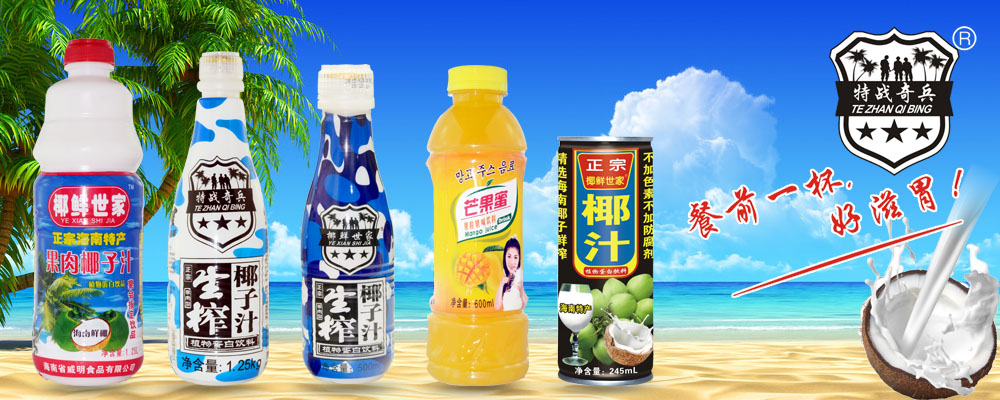 海南省威明食品有限公司成立于2013年,公司坐落于海南椰子之鄉海南省?谑,是集以海南椰子的深加工、研發、生產、銷售于一體的生榨椰子汁飲料生產企業。我們公司有“椰鮮世家”椰子汁、“椰鮮世家”生榨椰子汁和“特戰奇兵”生榨椰子汁等等的海南椰子汁讓您喝出健康、喝出美麗。